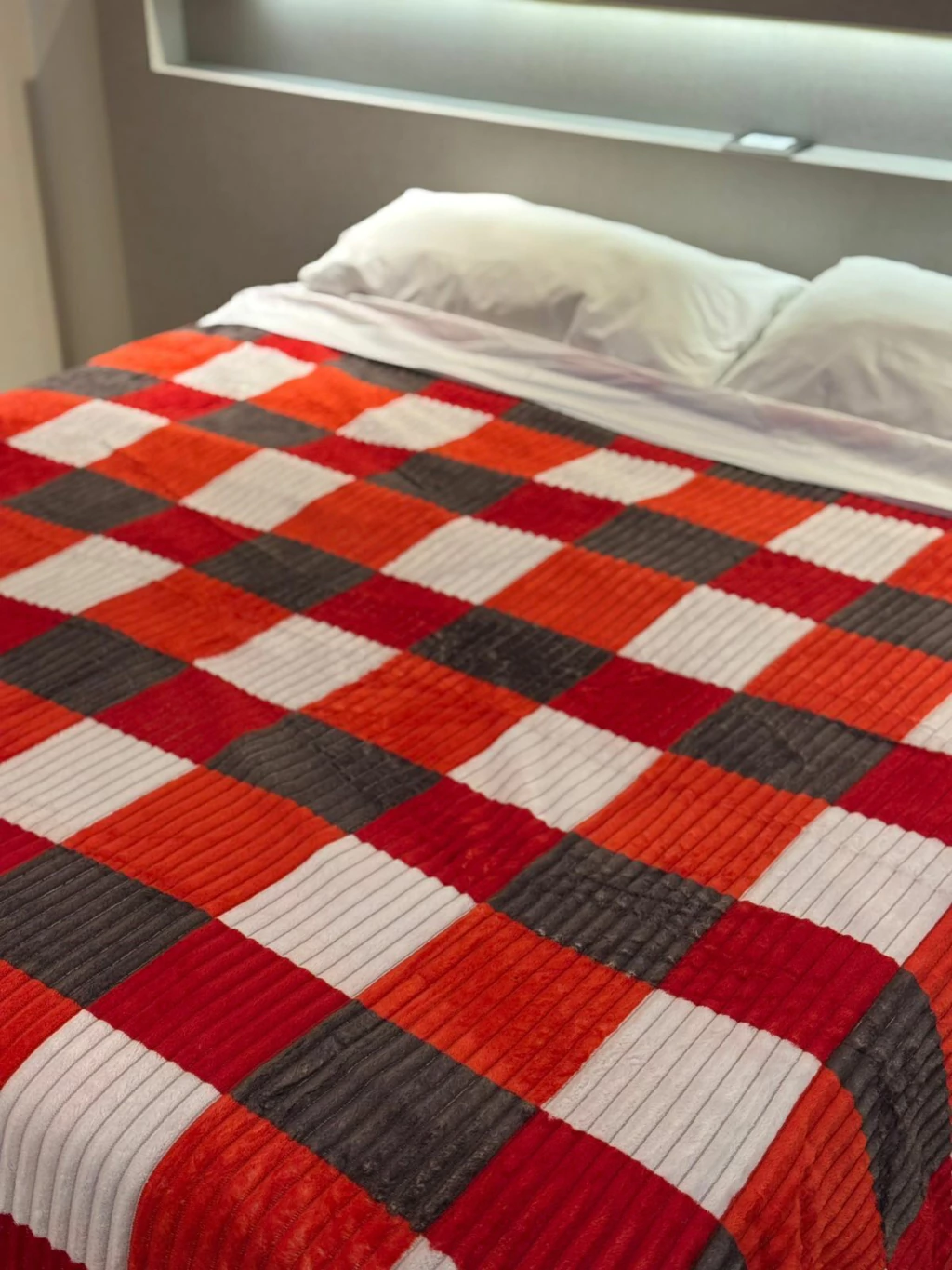 Abrigate con estilo y confort gracias a esta manta con diseño a cuadros y forro interno de corderito súper suave. Ideal para camas de 2 plazas y media, combina una textura cálida con un look clásico y moderno a la vez. Perfecta para darle un toque decorativo y funcional a tu dormitorio.