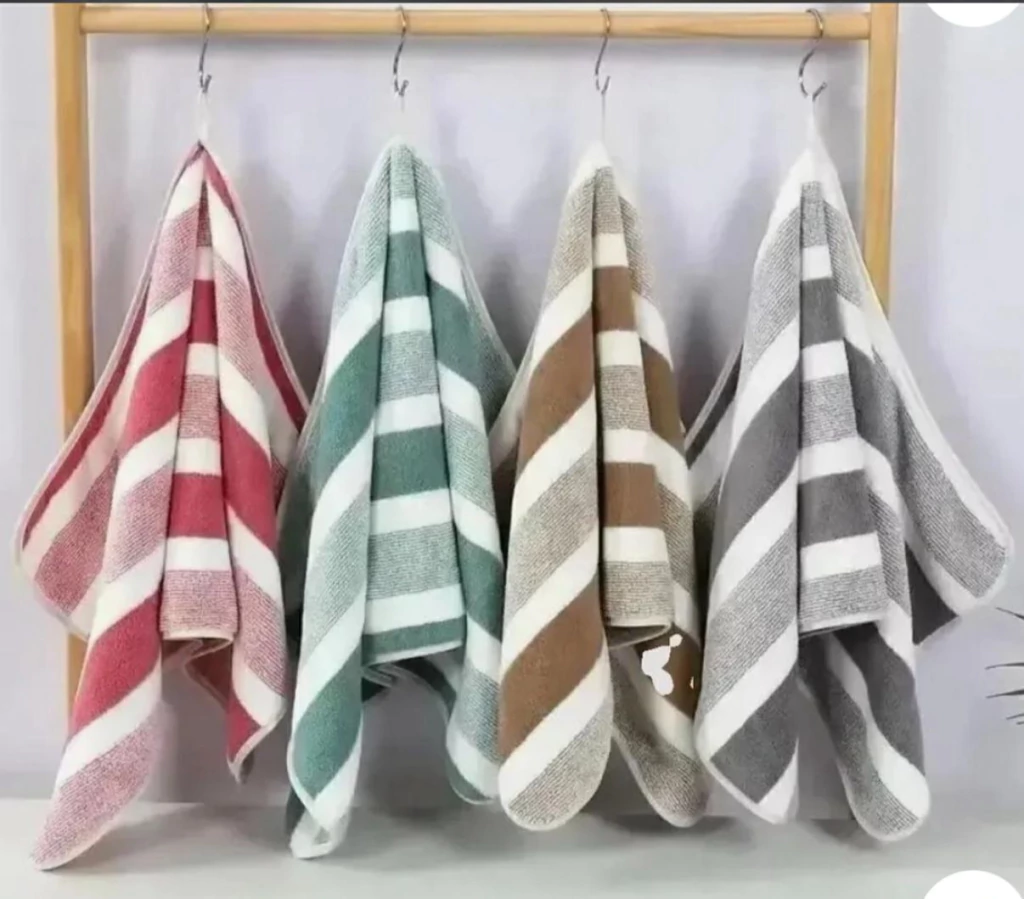 Disfrutá del confort y la suavidad de nuestro toallón de algodón, ideal para tus momentos de relax en casa, la pileta o la playa. Su diseño con rayas en delicados tonos pastel combina frescura y estilo, aportando un detalle moderno y armonioso a tu rutina diaria.